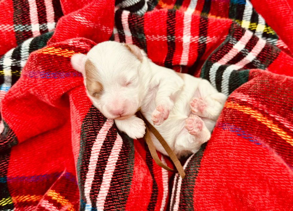 Chase & Teeter's first litter of Teacup Aussiedoodle puppies was born 12/19/25. Teeter (mom) is a 9" tall, 10 pound ASDR/CKC Red Merle Toy Australian Shepherd. Chase (dad) is a 11.5" tall, 10 pound AKC/CKC Apricot Parti Miniature Poodle. Both parents have been health tested and are 100% clear of any breed relevant genetic conditions. These puppies are expected to be under 10 pounds fully grown. Puppies comes with CKC registration, parents health testing 100% clear, shots and dewormer up to date, microchip, NexGard Plus for flea, tick & heart worm prevention, vet records, a one year health guarantee and a puppy go home kit that includes toys, treats, collar, harness, leash, blanket, food, food bowl and vitamins.